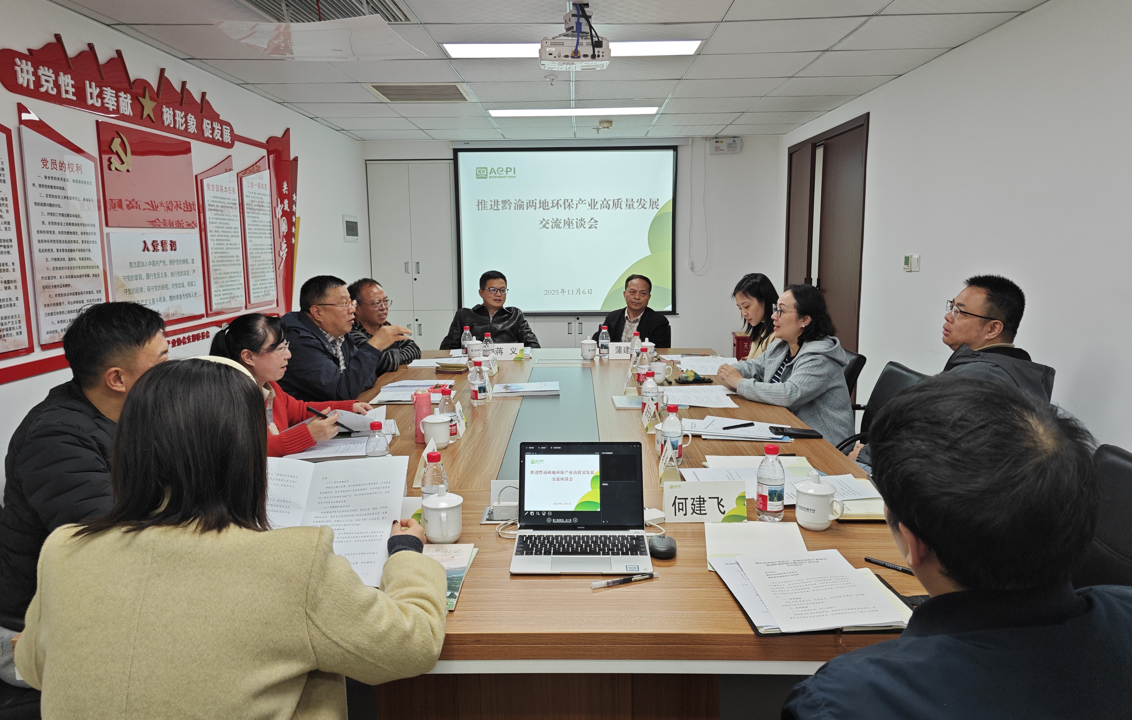 11月6日,贵州省环境保护产业协会党支部书记、会长边金顺一行到协会调研座谈,商议黔渝两地环保产业协会协同合作相关事宜。
